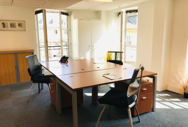 D’une superficie modulable de 24 à 27 m², cet espace de bureaux à Paris 1 er facilite l’installation d’une équipe de 4 à 5 collaborateurs. En plus du mobilier mis à disposition : postes de travail, fauteuils de direction, caissons de rangement et armoire.