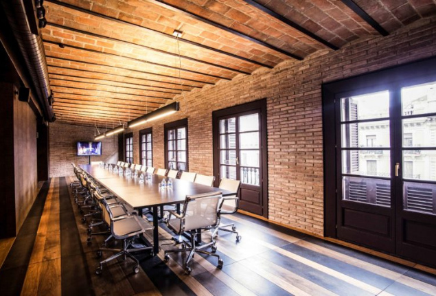 Atypique, lumineuse et modulable, cette salle réunion Barcelone d’une superficie de 78 m² offre un espace de travail singulier. En effet, il s’agit d’une salle noble avec un plafond voûté catalan, des murs de briques restauré au XIXème siècle et une table en bois massif. Ses cinq grandes fenêtres offre une vue sur l’emblématique Portal del Angel, ce qui lui confère une lumière particulière.