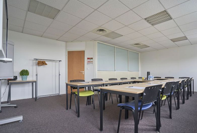 Cet espace de réunion de 35 m² se module selon les besoins en U, en théâtre ou en classe d’école. Il peut ainsi accueillir de 10 à 14 participants.